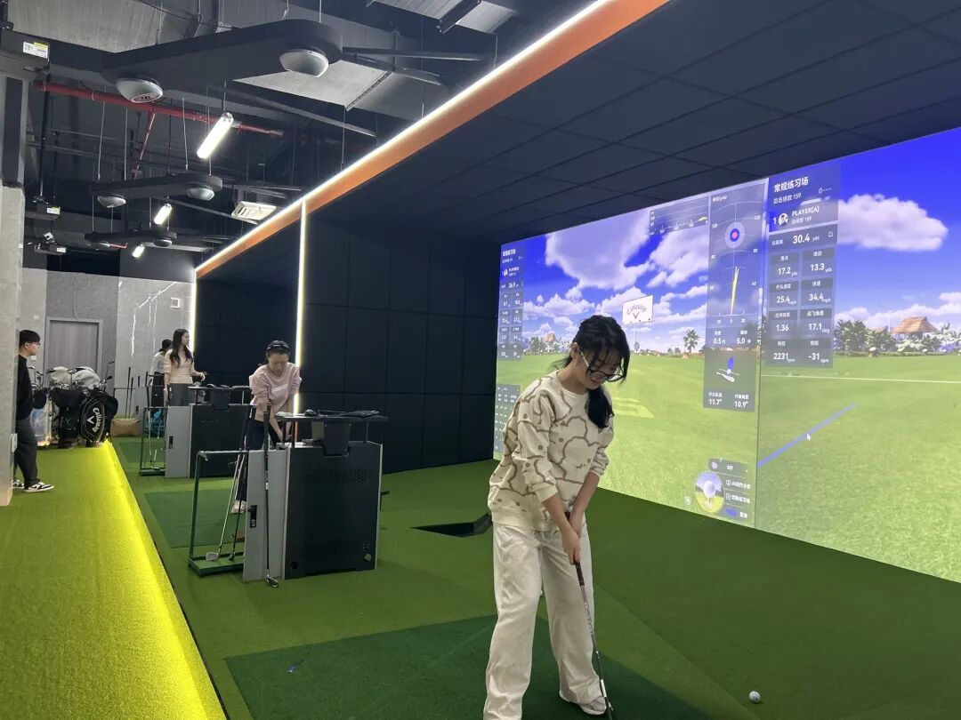 而高尔夫模拟器,它不依赖大规模土地,不依赖高成本投入,可以进入社区、进入商城、进入校园,成为日常教学的一部分。